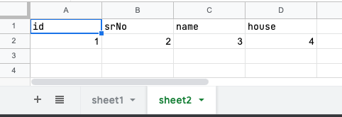 GoogleSpreadsheetSheet1 = Googleスプレッドシートの1つめのシートGoogleSpreadsheetSheet2 = Googleスプレッドシートの2つめのシート
